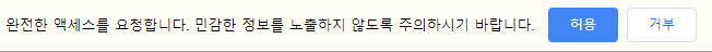 그럼 상단에 이런 문구가 뜰 텐데, 허용을 누른다.