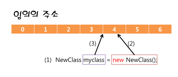 (2) new NewClass()를 통해 생성된 객체가 주소 4(임의로 설정한 주소)에 저장됨